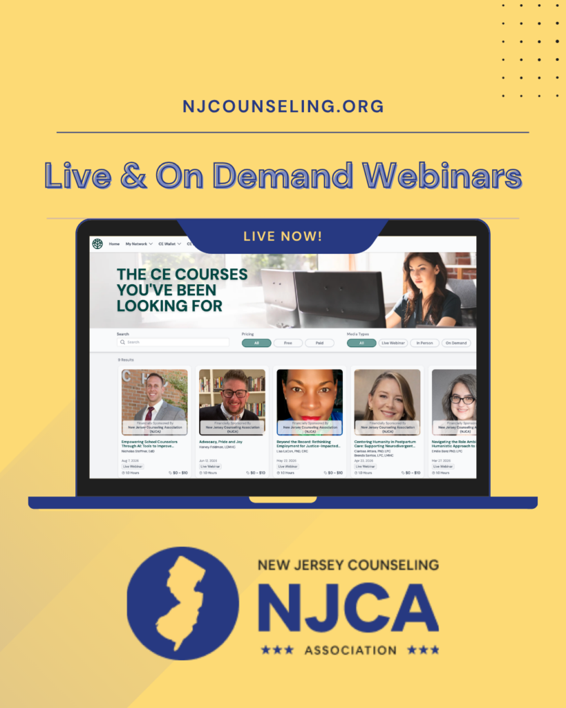 NJCA’s mission is to promote counseling, including professional development, public awareness of counseling, as well as confidence and trust in the counseling profession. NJCA is the leading state organization of counselors who work to create an environment in which quality counseling services are accessible, available, and utilized.